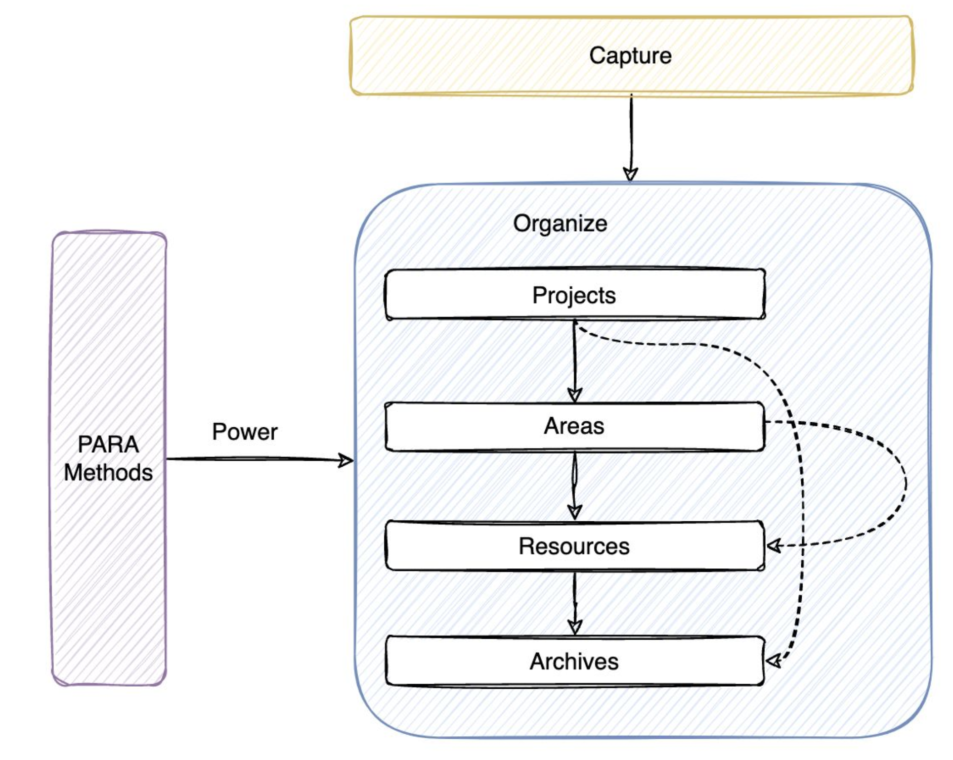- 随后,我们通过 PARA 的指导对 Capture 的想法和事情加以整理(Organize)