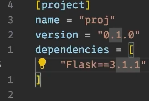 python -m venv .venvsource .venv/bin/activateedit pyproject.toml- 在dependencies中添加flask ≥ 3.1.1
